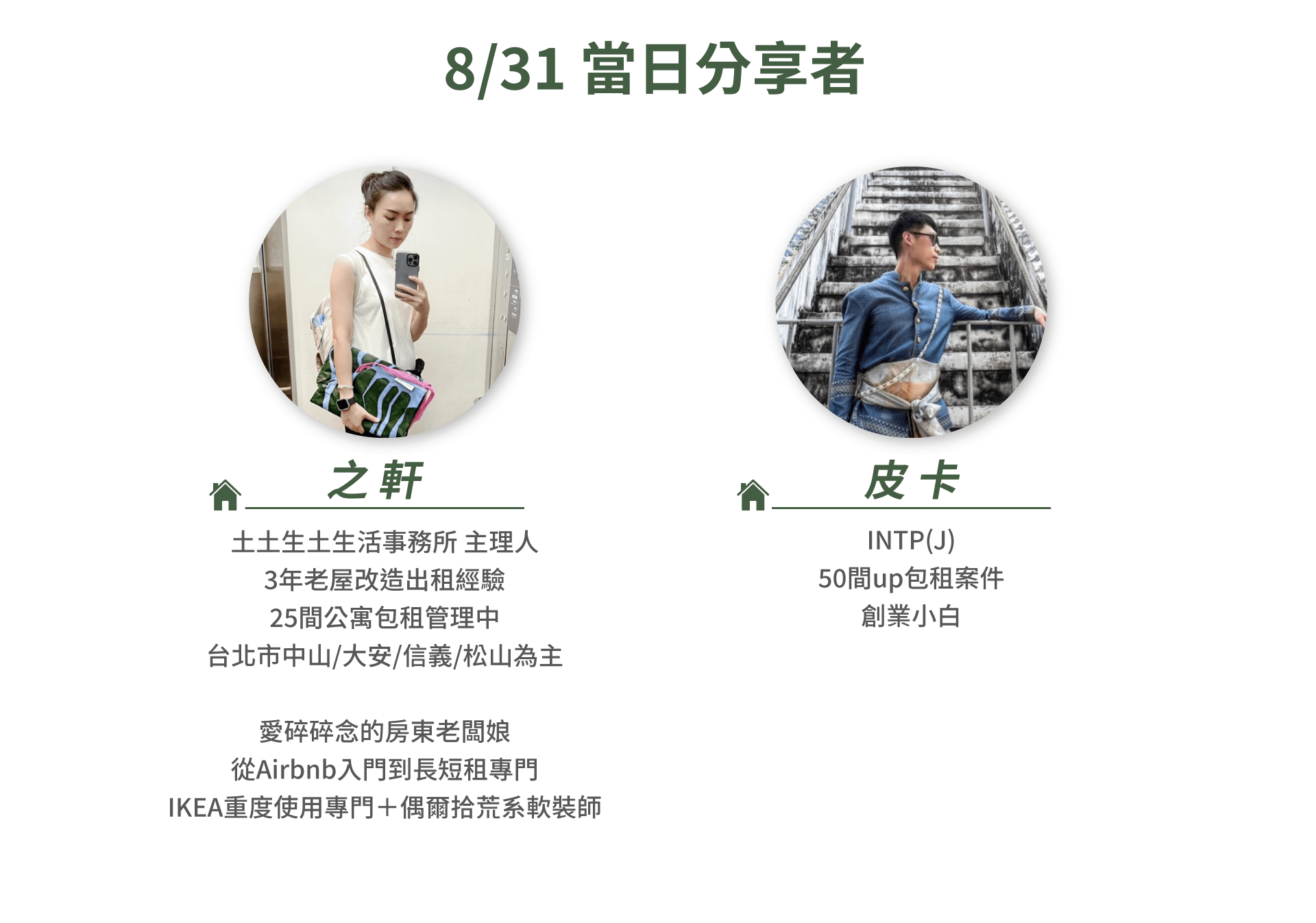 除了經營自己的事業「一方生活」,也致力於分享「包租代管創業模式」,推廣房地產+訂閱制帶來的穩定被動收入,讓大家更有底氣邁向理想中的人生。