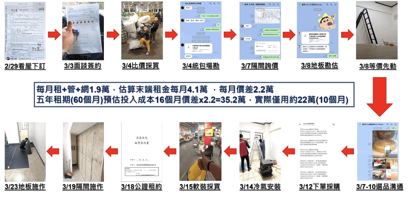 在短短一個月內成功完成裝修,兩週內滿租,開始了穩定的現金收入,現在繼續複製成功的模式並擴大業務規模中。執行的過程中他感到非常踏實,一步一步前進。
